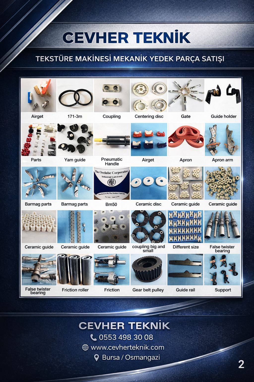 ✔ Barmag, TMT, Murata (Muratec), ICBT, SSM, AIKI ve diğer tekstüre makineleri için yedek parça