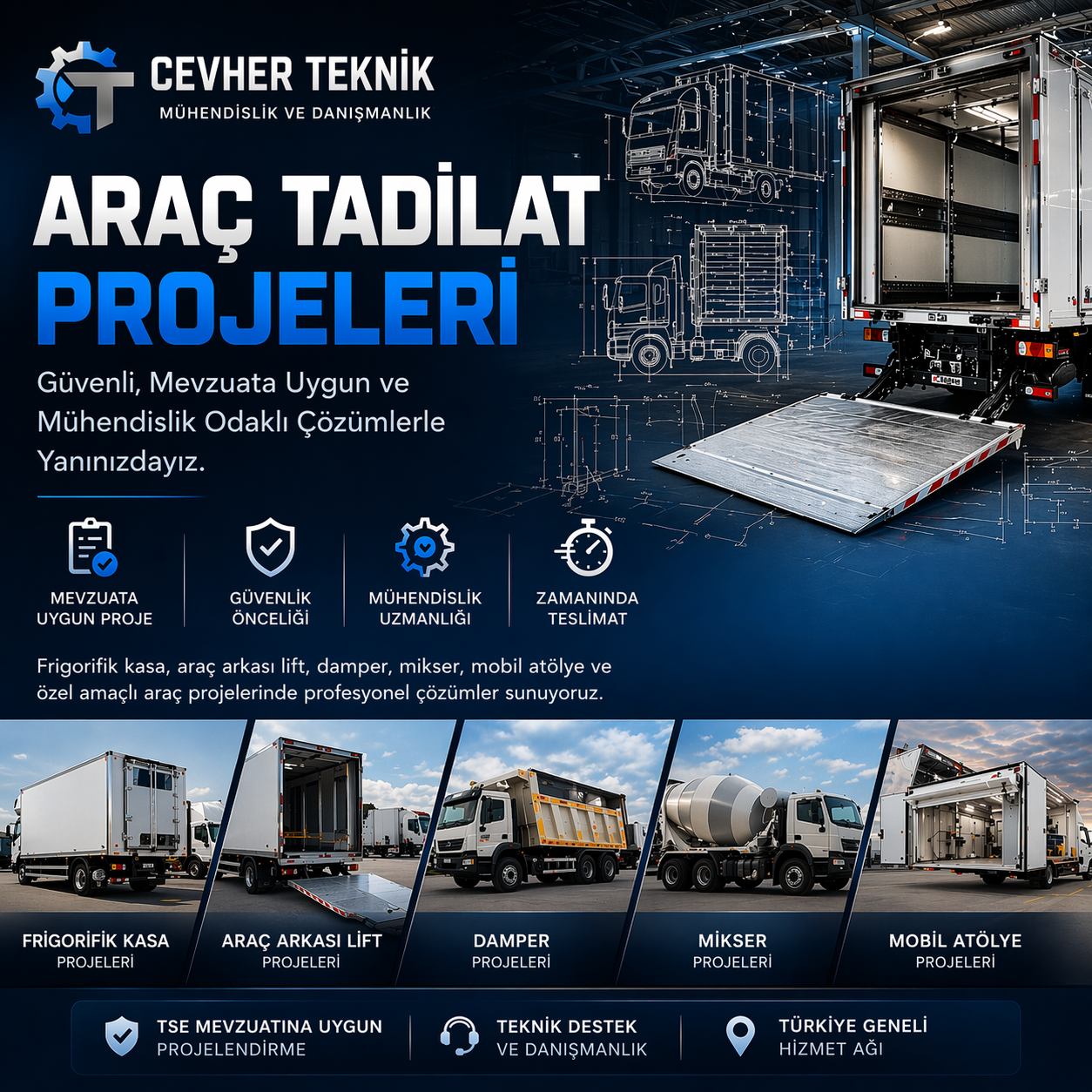 Araç tadilat projeleri, mevcut araçların kullanım amacına uygun şekilde yeniden düzenlenmesi ve bu değişikliklerin TSE ve AİTM yönetmeliklerine uygun olarak projelendirilmesi sürecidir. Yapılan her tadilatın yasal, güvenli ve teknik açıdan doğru olması zorunludur.
